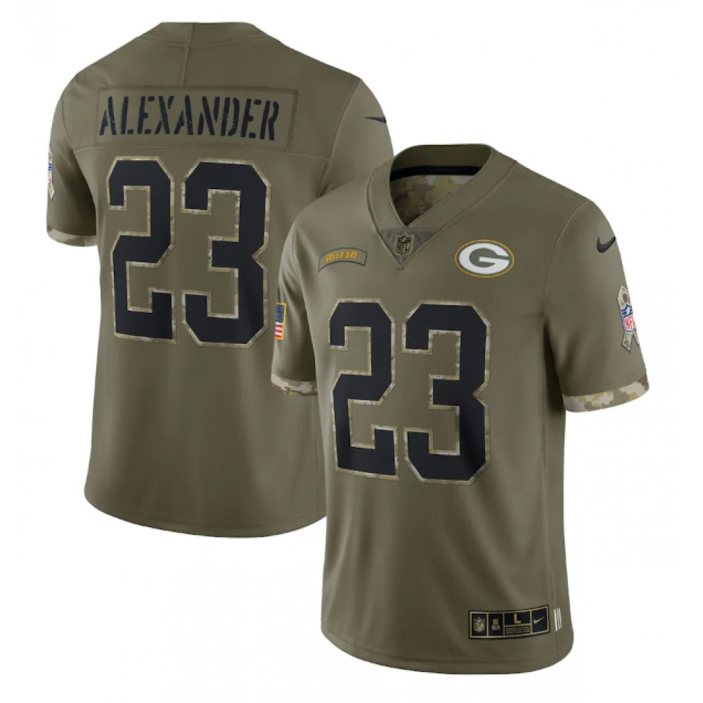 Men's Green Bay Packers #23 Jaire Alexander Olive 2022 Salute To Service Limited Stitched Jersey