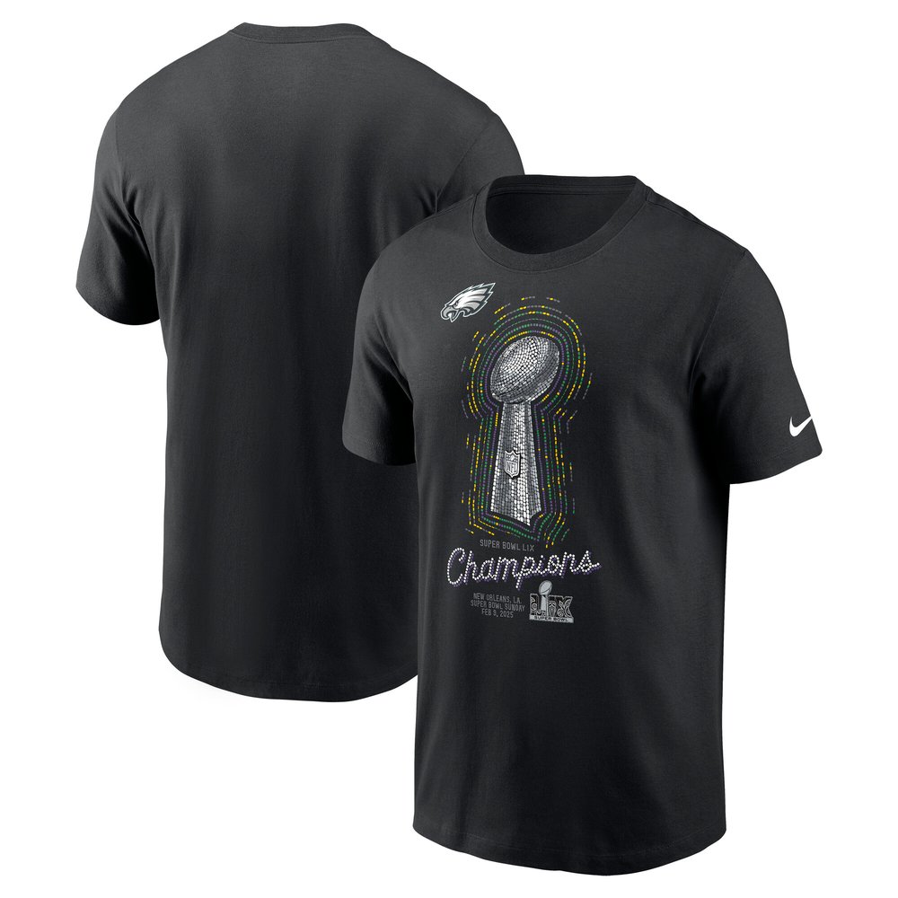 Men's Philadelphia Eagles Nike Black Super Bowl LIX Champions Lombardi Trophy T-Shirt