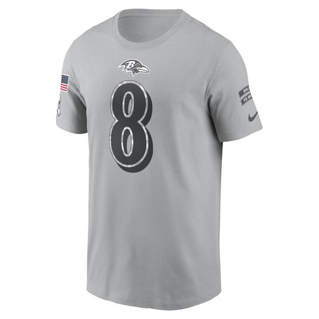 Men's Baltimore Ravens Lamar Jackson Nike Gray 2024 Salute To Service Name & Number T-Shirt