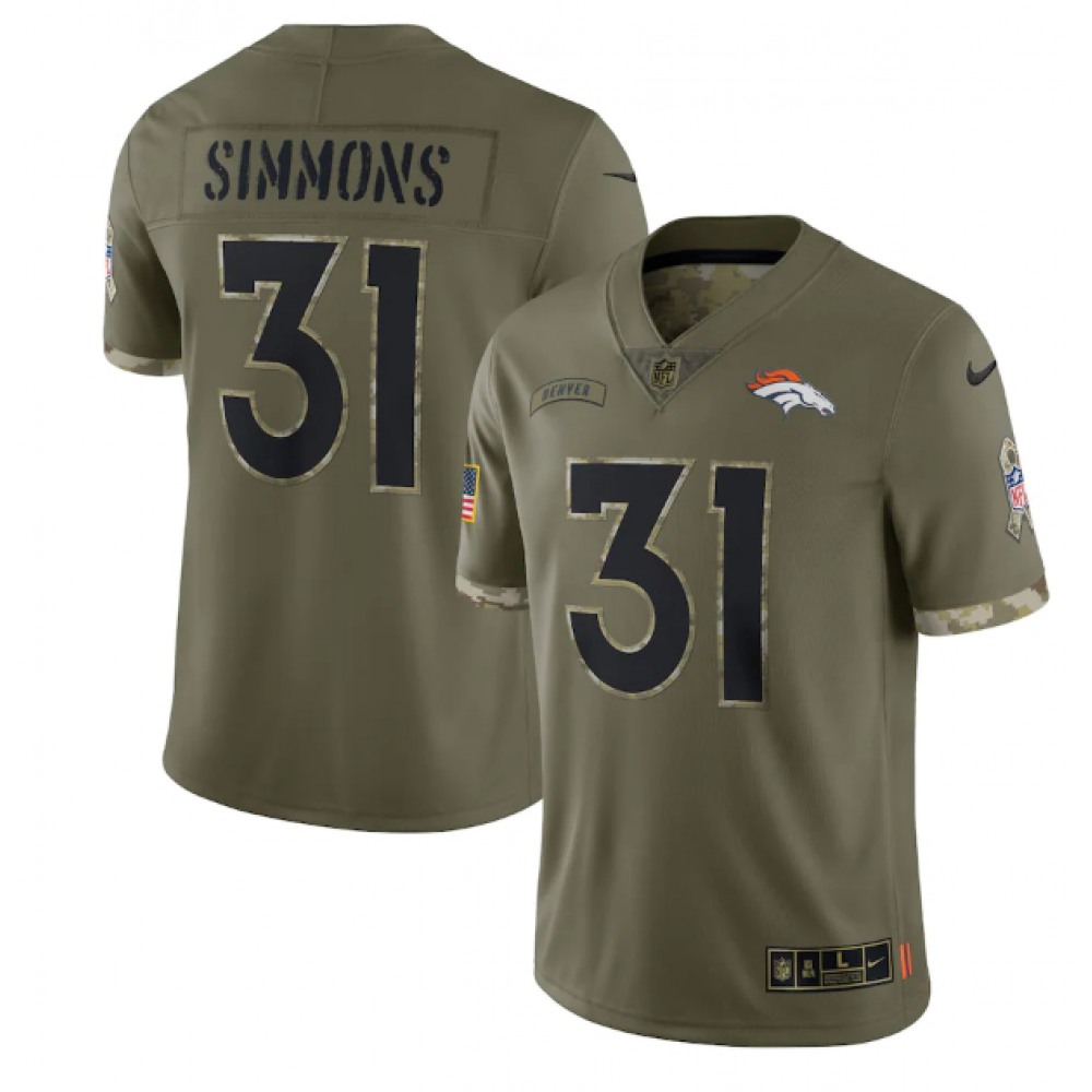 Men's Denver Broncos #31 Justin Simmons Olive 2022 Salute To Service Limited Stitched Jersey