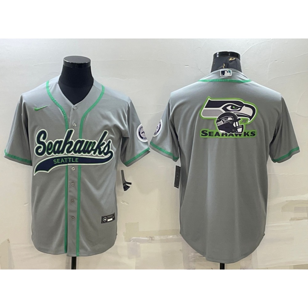 Men's Seattle Seahawks Grey Team Big Logo With Patch Cool Base Stitched Baseball Jersey