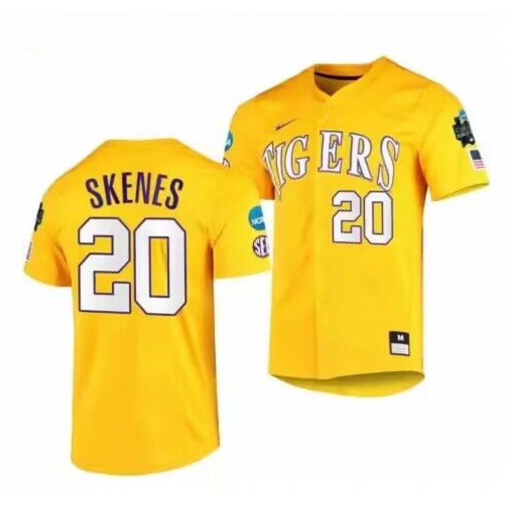 Men's LSU Tigers Custom Gold 2023 College World Series Stitched Baseball Jersey