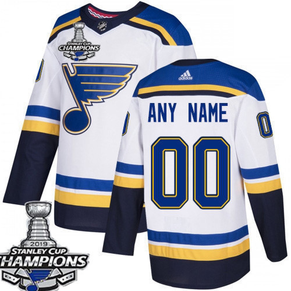 Men's St. louis Blues White 2019 Stanley Cup Champions Custom Name Number Size Stitched NHL Jersey