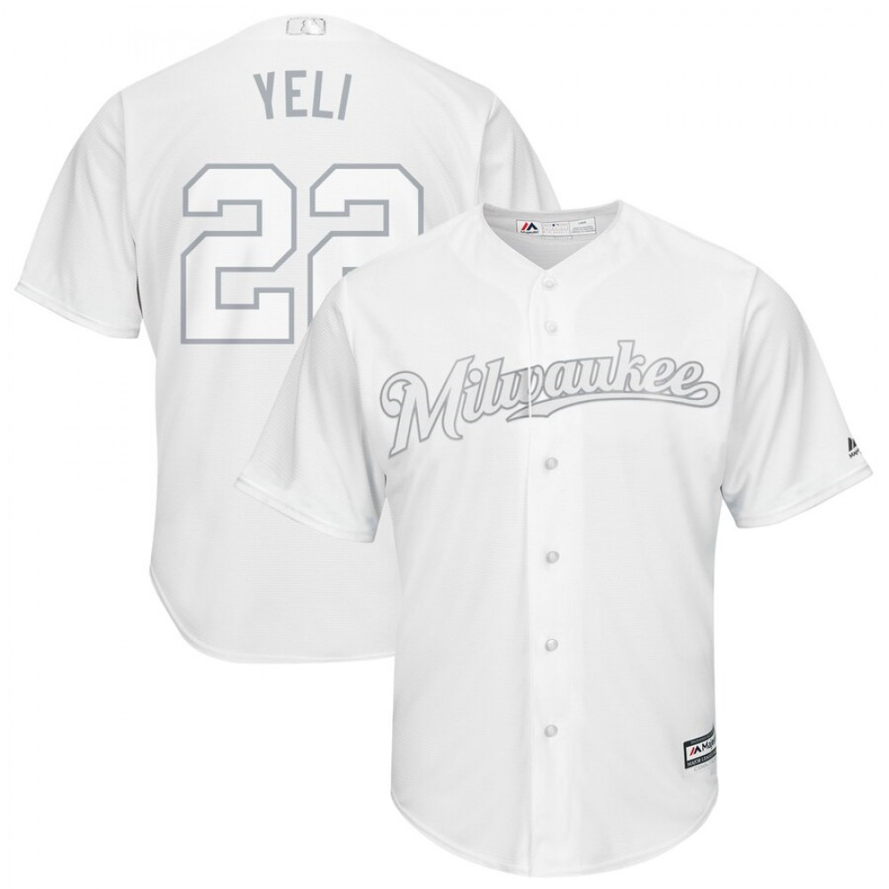 Men's Milwaukee Brewers #22 Christian Yelich "Yeli" Majestic White 2019 Players' Weekend Pick-A-Player Replica Roster Stitched MLB Jersey