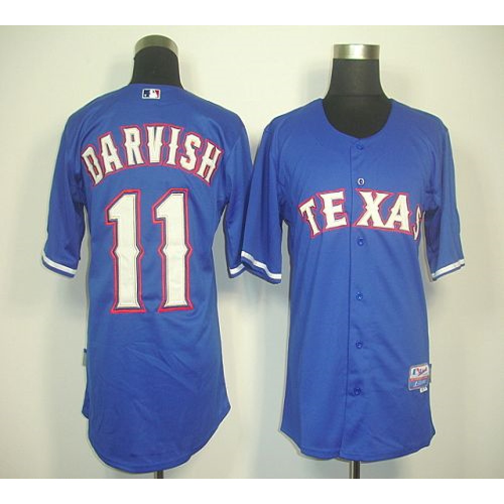 Rangers #11 Yu Darvish Blue 40th Anniversary Patch Cool Base Stitched MLB Jersey