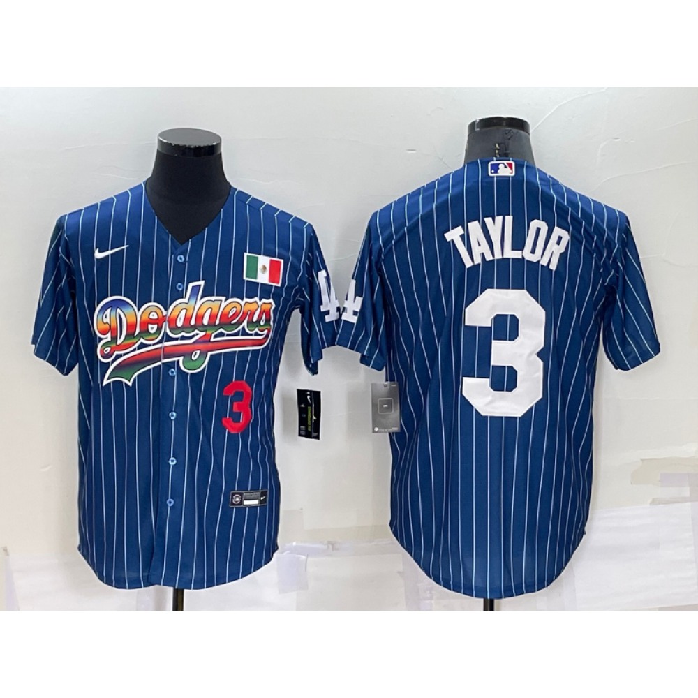 Men's Los Angeles Dodgers #3 Chris Taylor Navy Mexico Rainbow Cool Base Stitched Baseball Jersey