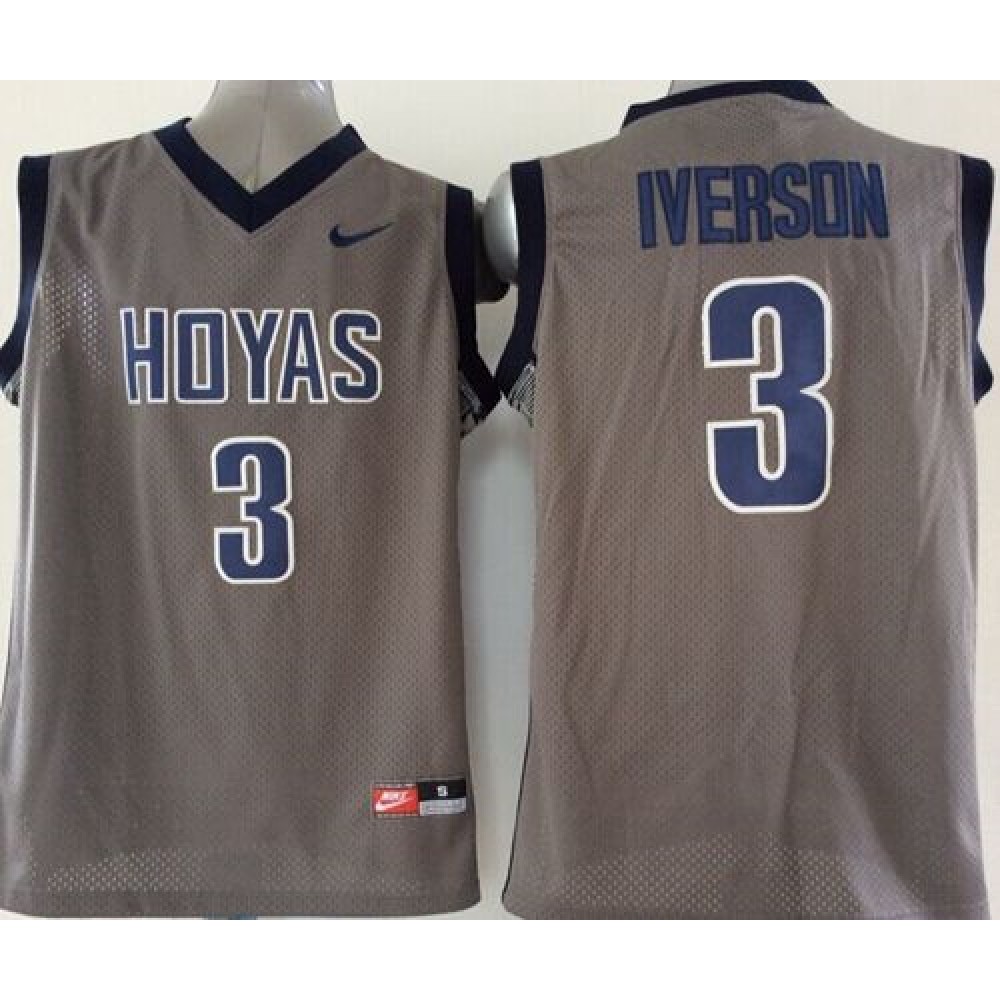 Hoyas #3 Allen Iverson Grey Basketball Stitched NCAA Jersey