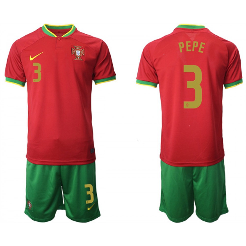 Men's Portugal #3 Pepe Red Home Soccer Jersey Suit