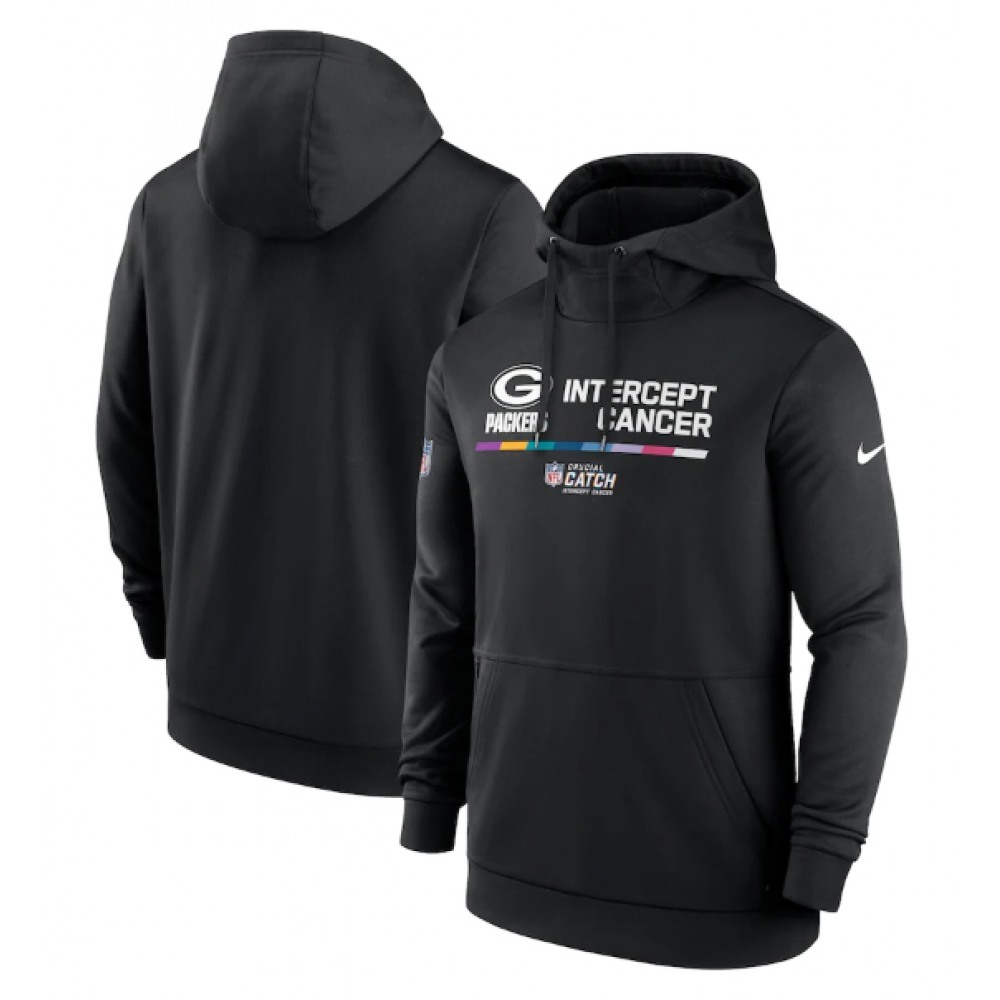 Men's Green Bay Packers 2022 Black Crucial Catch Therma Performance Pullover Hoodie
