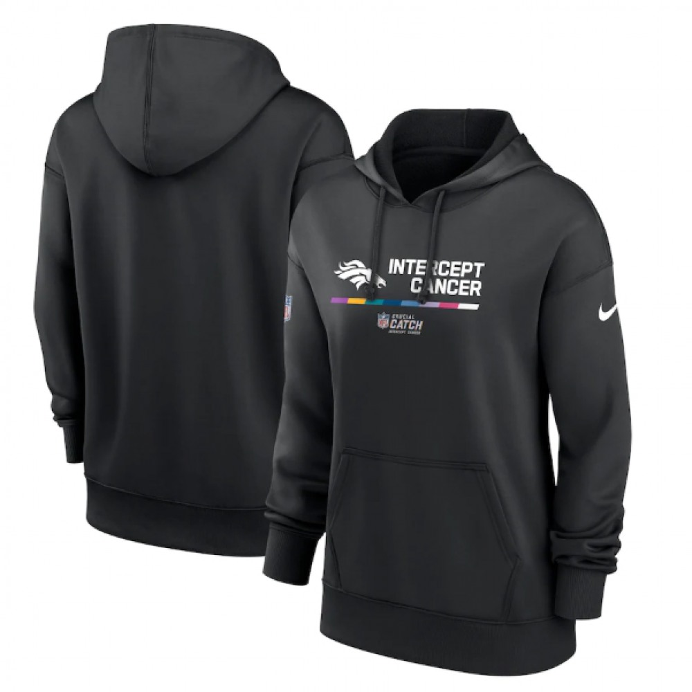 Women's Denver Broncos 2022 Black NFL Crucial Catch Therma Performance Pullover Hoodie(Run Small)