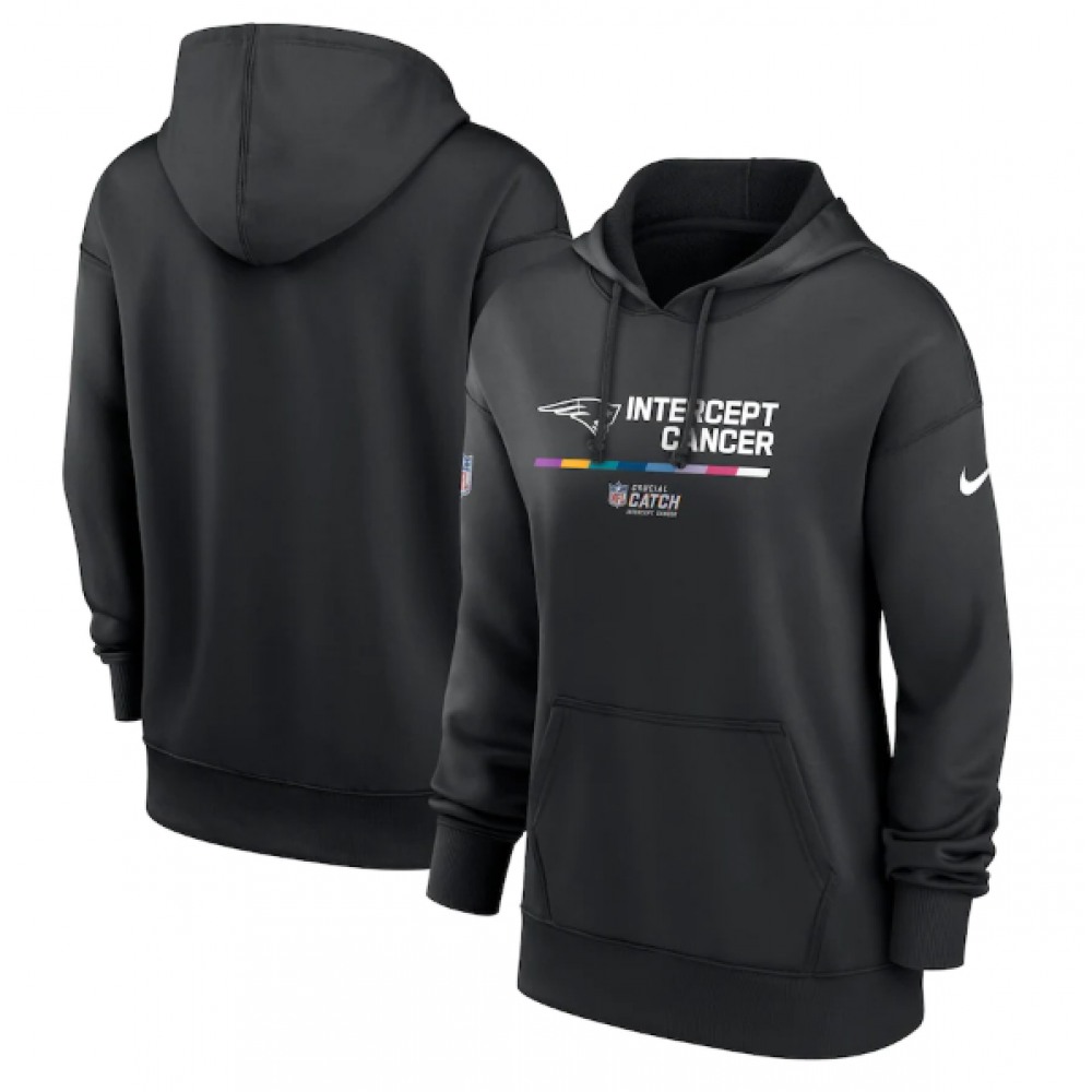 Women's New England Patriots 2022 Black NFL Crucial Catch Therma Performance Pullover Hoodie(Run Small)