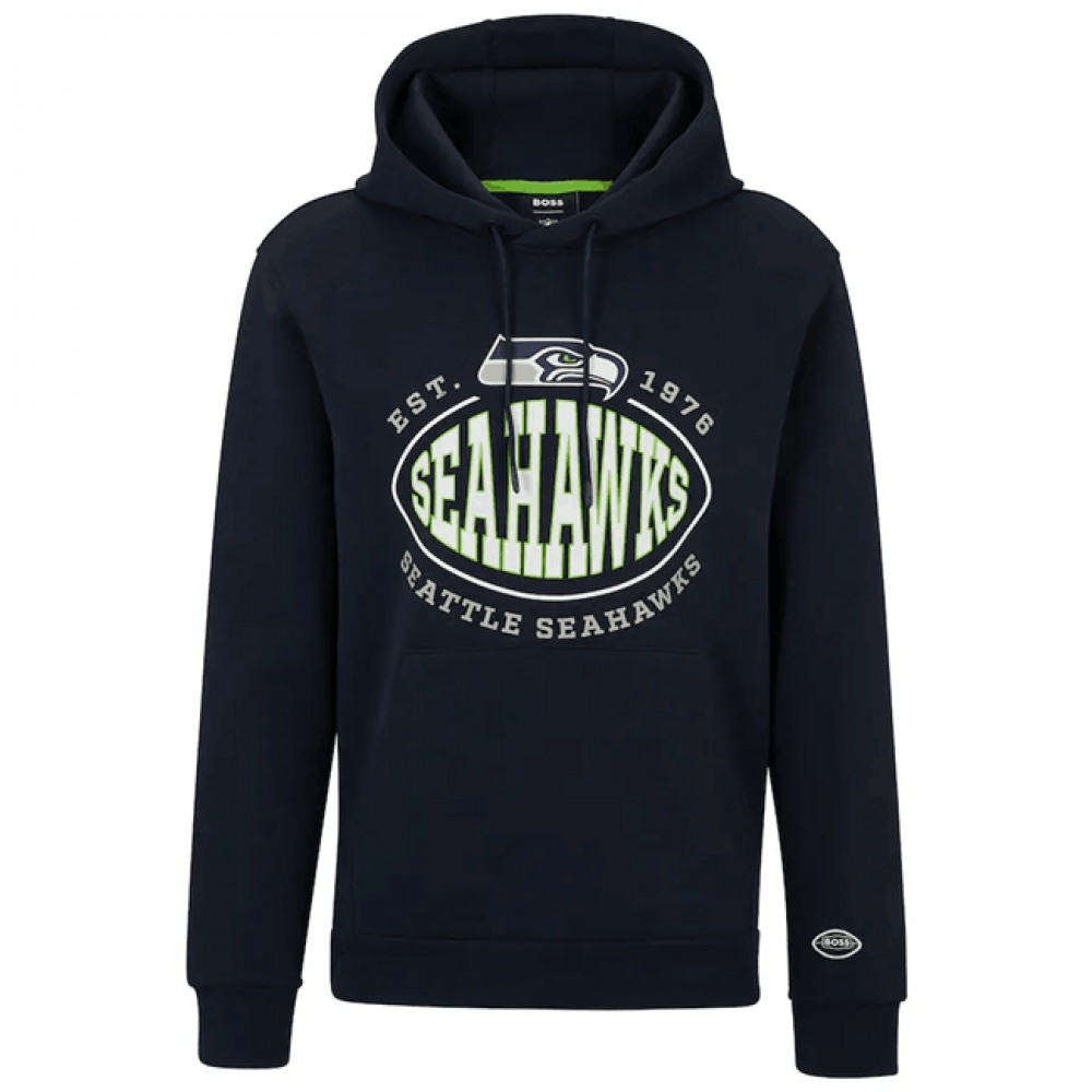 Men's Seattle Seahawks Navy BOSS X Touchback Pullover Hoodie