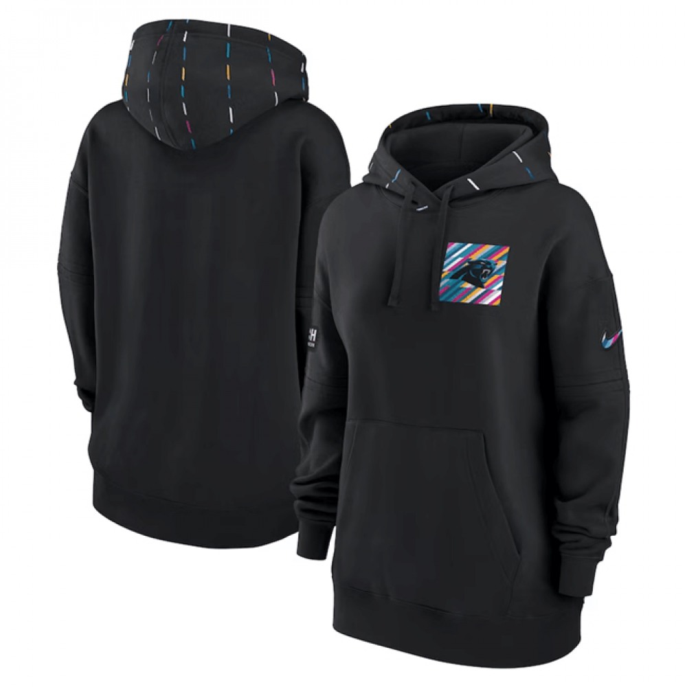 Women's Carolina Panthers Black 2023 Crucial Catch Club Pullover Hoodie(Run Small)