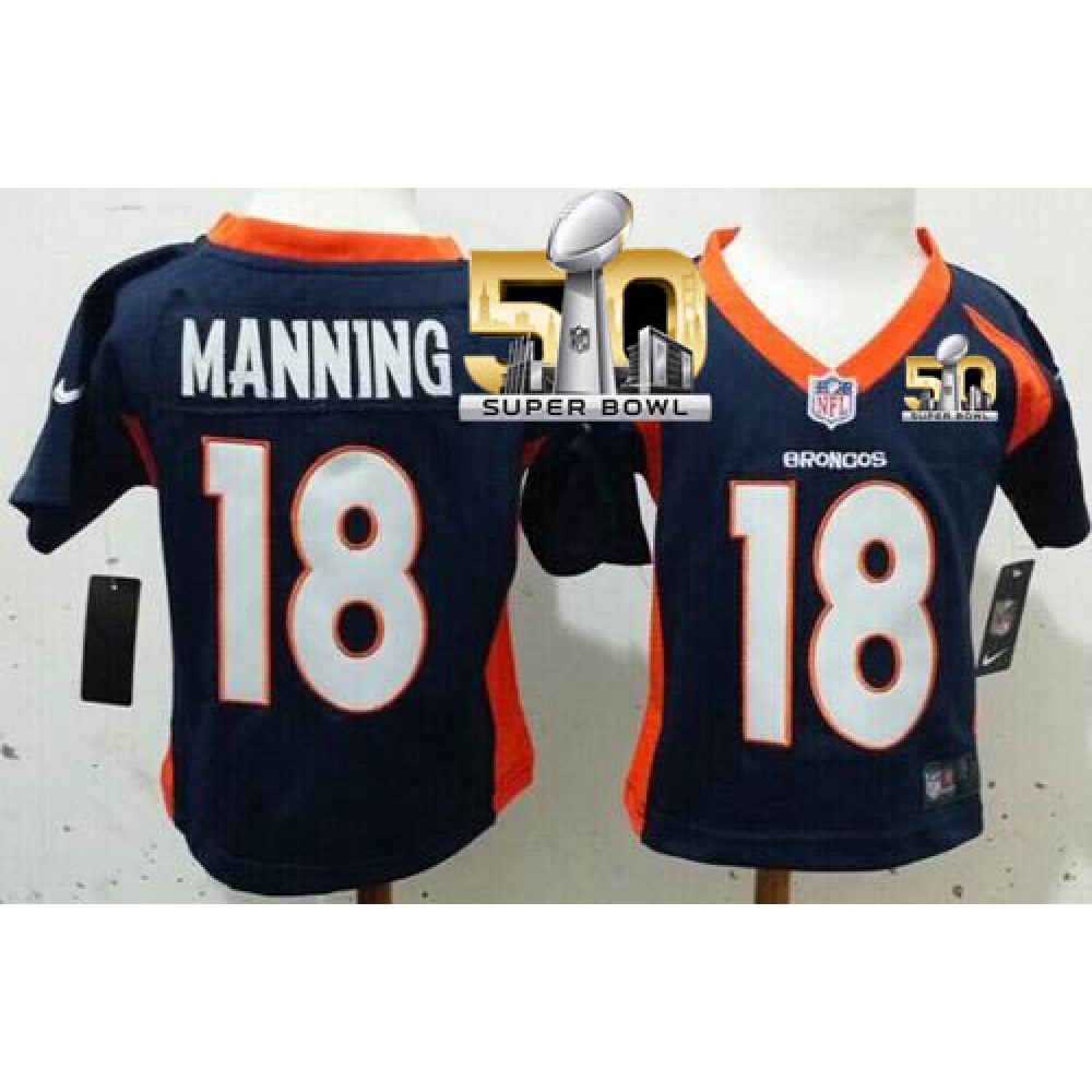 Toddler Nike Broncos #18 Peyton Manning Navy Blue Alternate Super Bowl 50 Stitched NFL Elite Jersey