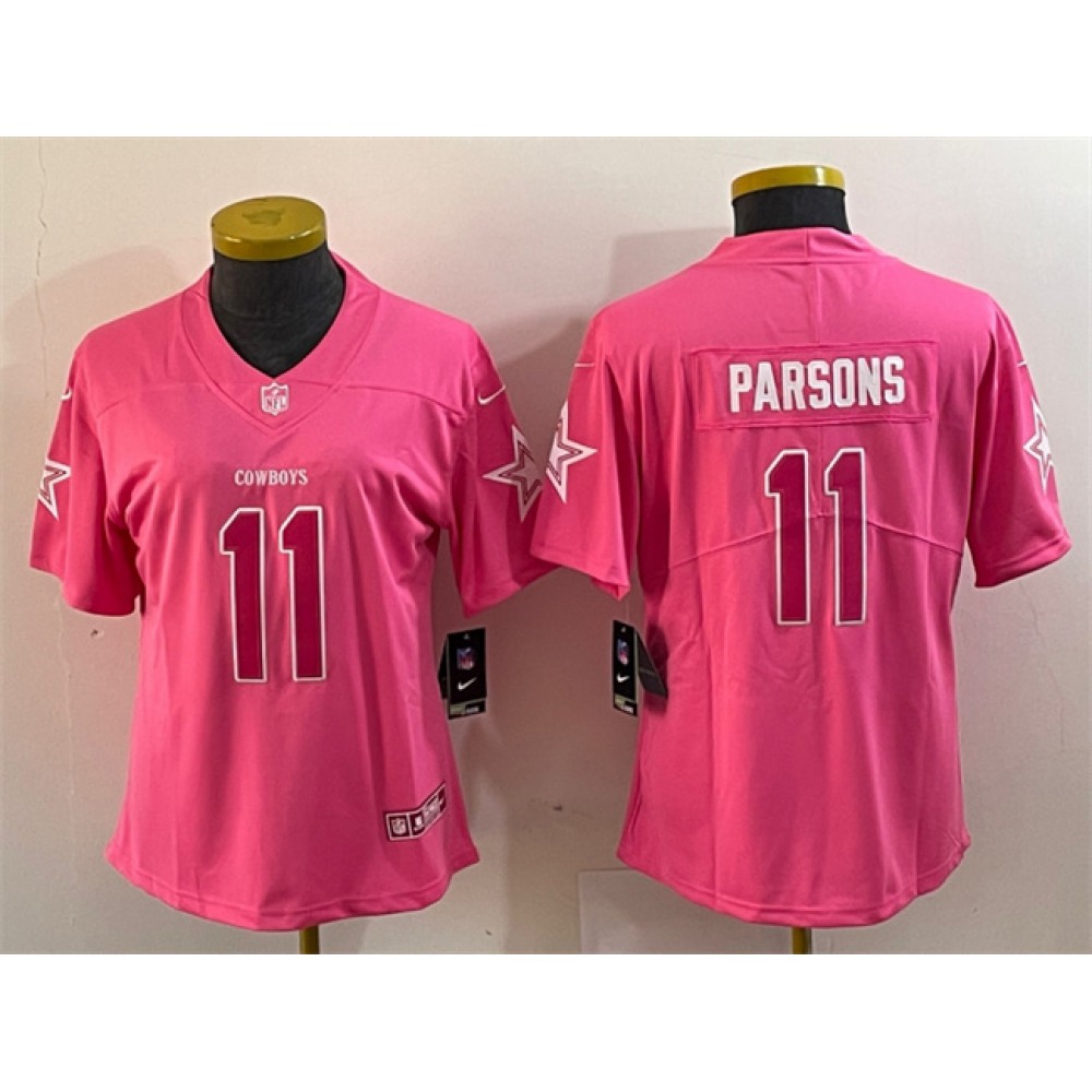Women's Dallas Cowboys #11 Micah Parsons Pink Vapor Untouchable Limited Stitched Jersey(Run Small)