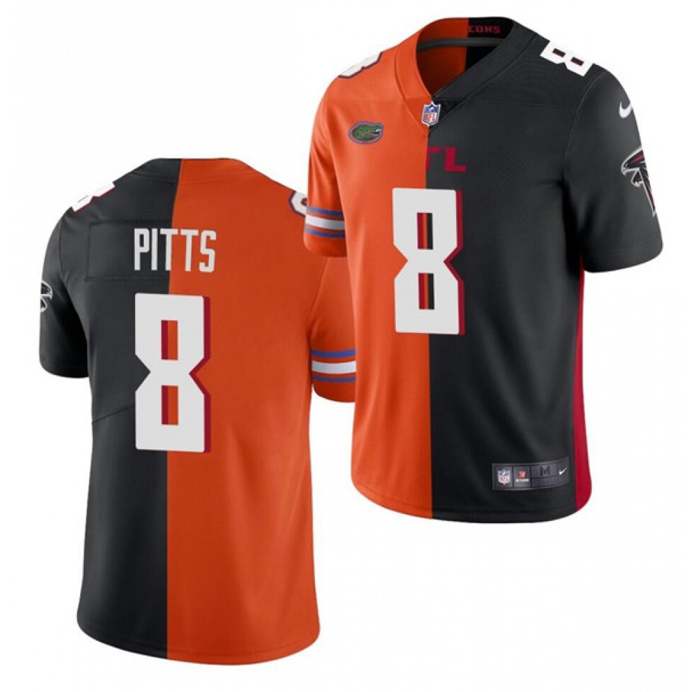 Men's Atlanta Falcons #8 Kyle Pitts 2021 Orange/Black Split Stitched Jersey