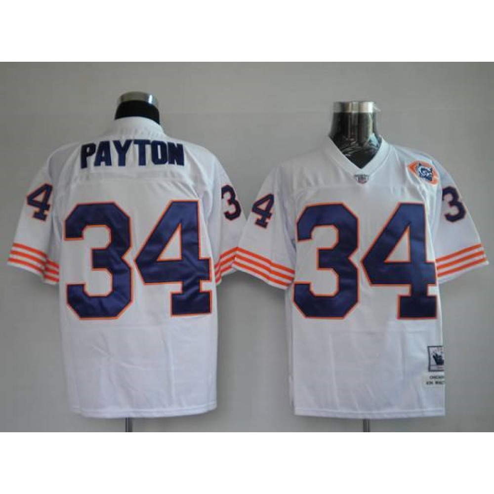 Mitchell & Ness Bears #34 Walter Payton White With Big Number Bear Patch Stitched Throwback NFL Jersey