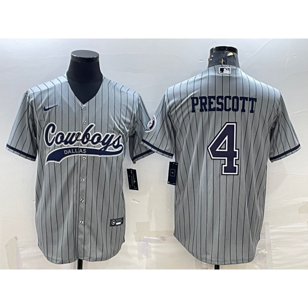 Men's Dallas Cowboys #4 Dak Prescott Gray With Patch Cool Base Stitched Baseball Jersey