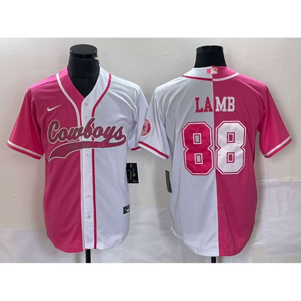 Men's Dallas Cowboys #88 CeeDee Lamb Pink/White Split Cool Base Stitched Baseball Jersey