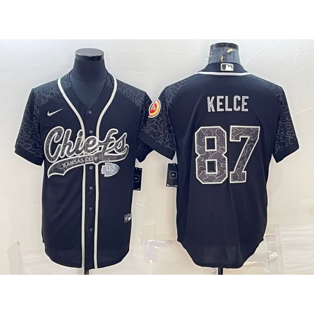 Men's Kansas City Chiefs #87 Travis Kelce Black Reflective With Patch Cool Base Stitched Baseball Jersey