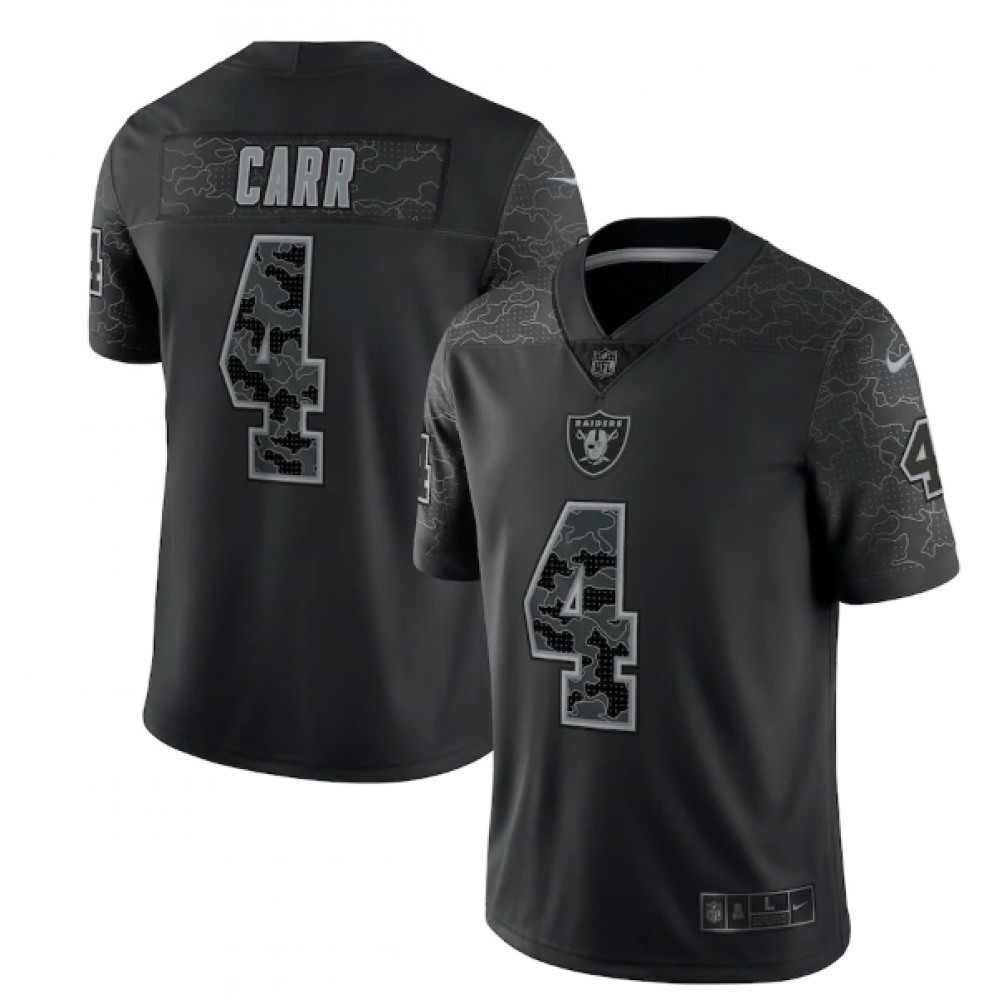 Men's Las Vegas Raiders #4 Derek Carr Black Reflective Limited Stitched Football Jersey