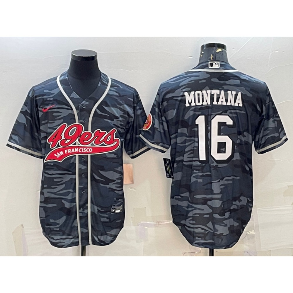 Men's San Francisco 49ers #16 Joe Montana Grey Camo With Patch Cool Base Stitched Baseball Jersey