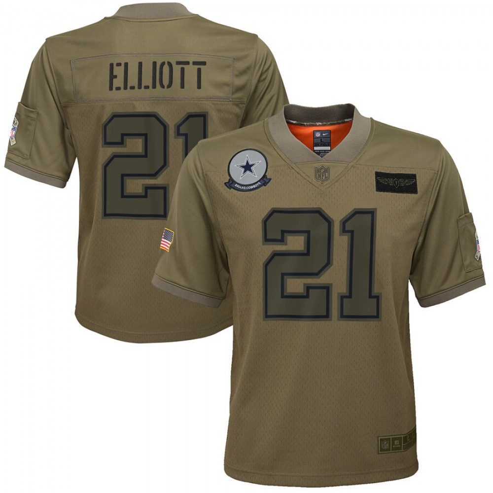 Youth Dallas Cowboys #21 Ezekiel Elliott 2019 Camo Salute To Service Stitched NFL Jersey