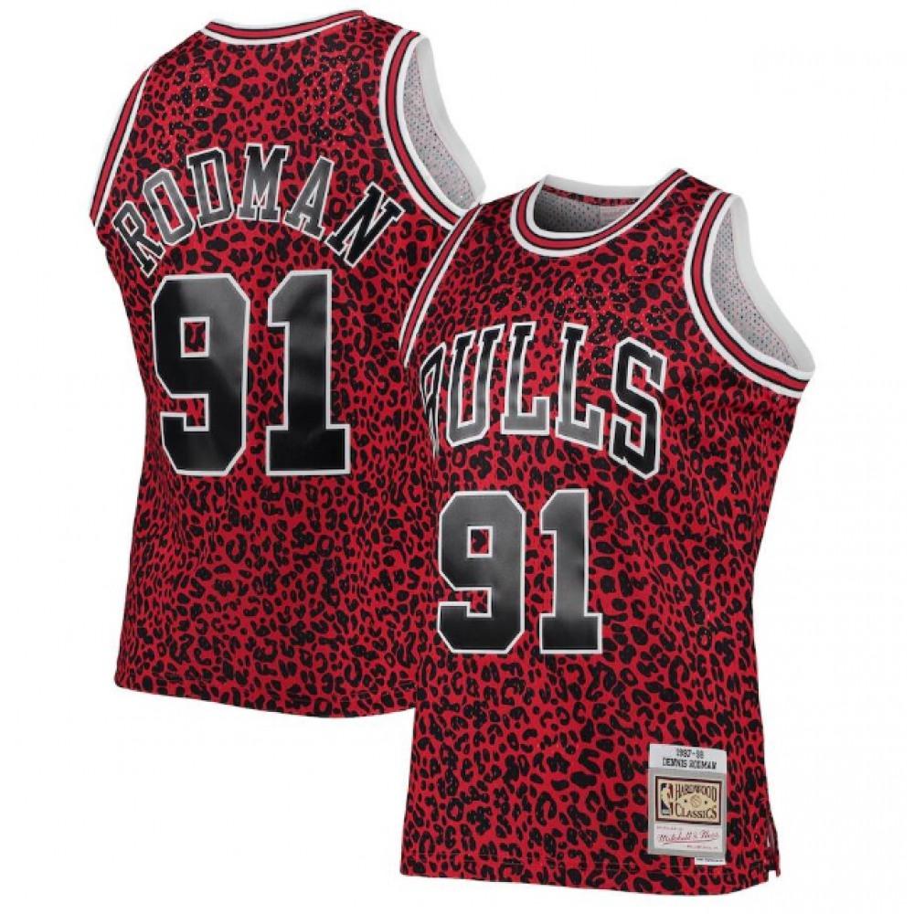 Men's Chicago Bulls #91 Dennis Rodman 1997-98 Red Mitchell & Ness Classics Wildlife Stitched Jersey