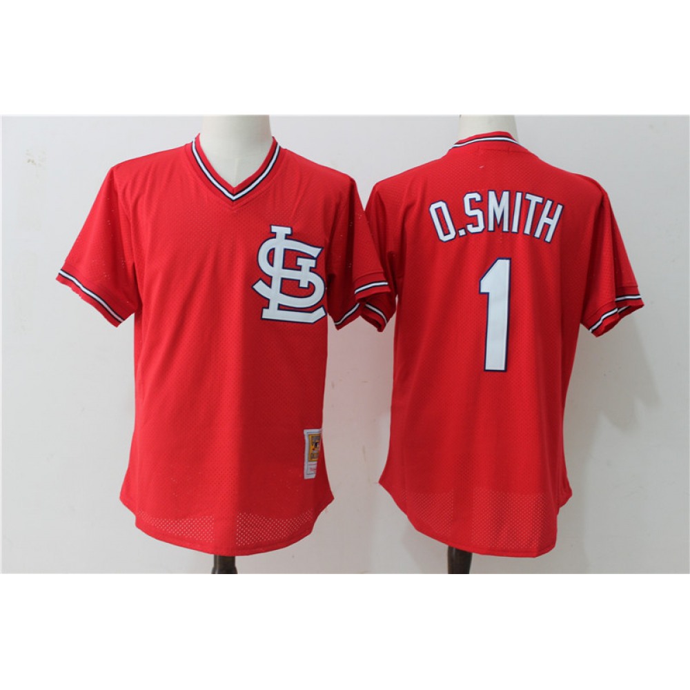 Men's St.Louis Cardinals #1 Ozzie Smith Mitchell & Ness Red 1985 Authentic Throwback Mesh Batting Practice Stitched MLB Jersey