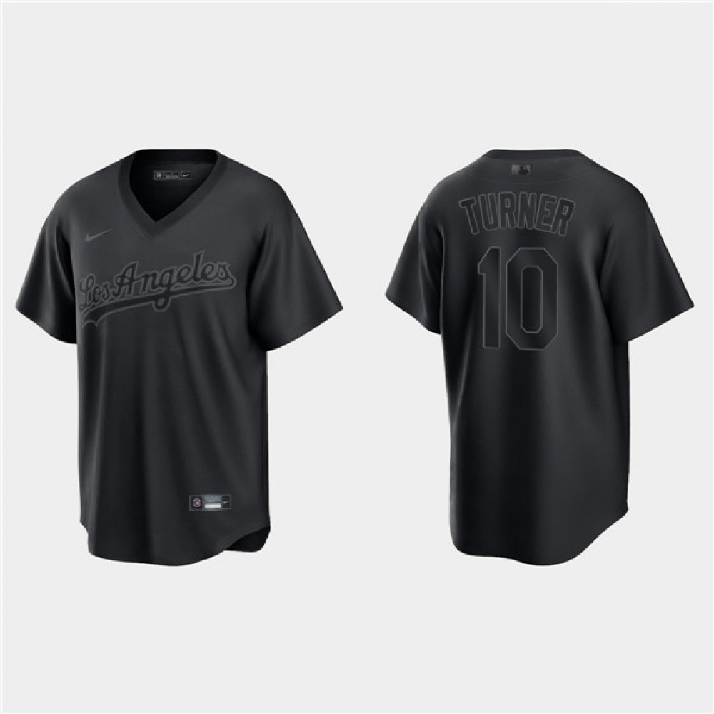 Men's Los Angeles Dodgers #10 Justin Turner Black Pitch Black Fashion Replica Stitched Jersey