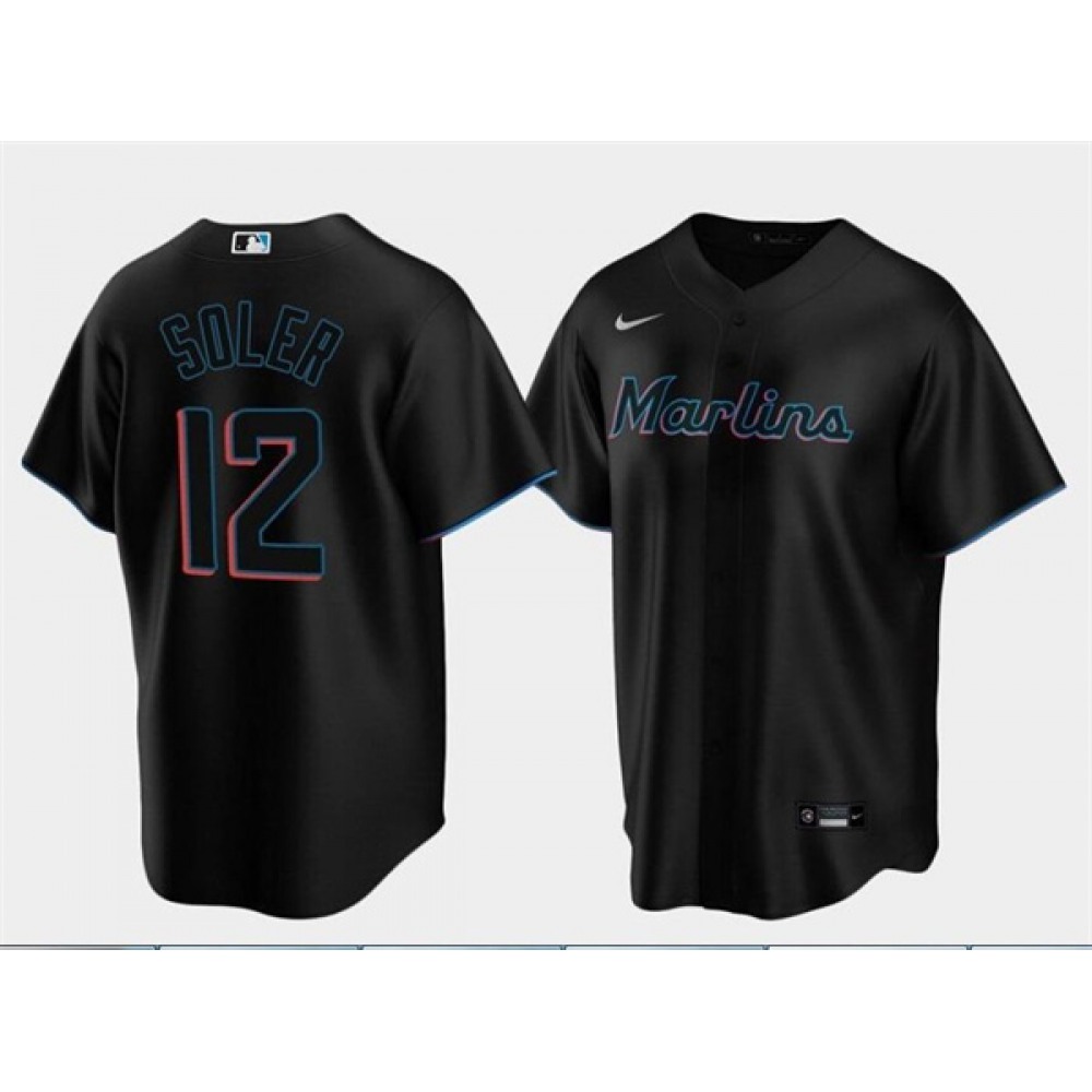 Men's Miami Marlins #12 Jorge Soler Black Cool Base Stitched Jersey
