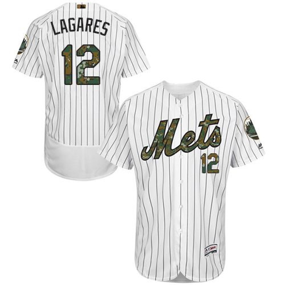 Mets #12 Juan Lagares White(Blue Strip) Flexbase Authentic Collection 2016 Memorial Day Stitched MLB Jersey