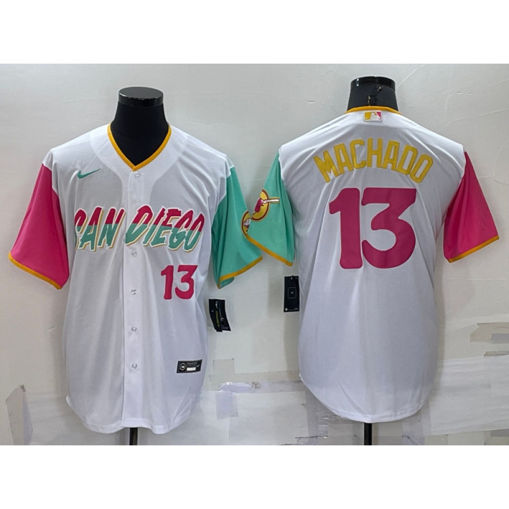 Men's San Diego Padres #13 Manny Machado 2022 White City Connect Cool Base Stitched Jersey