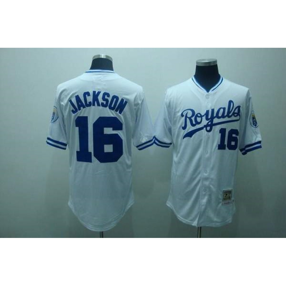 Mitchell and Ness Royals #16 Bo Jackson Stitched White Throwback MLB Jersey
