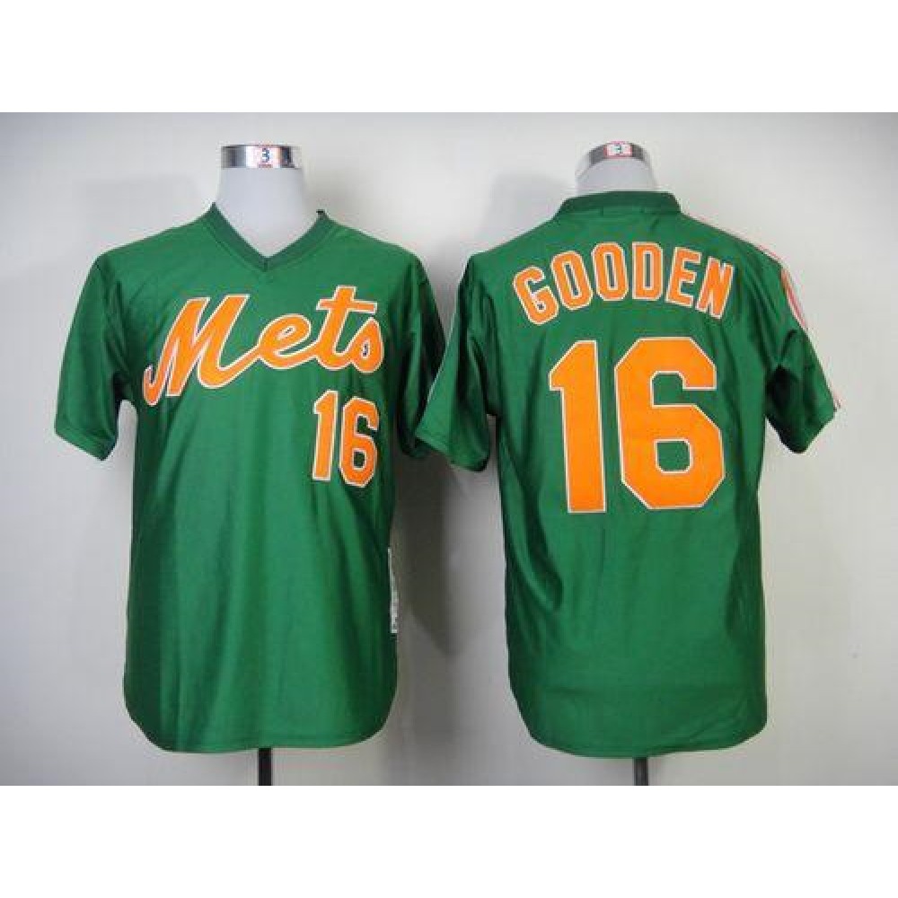 Mitchell and Ness 1985 Mets #16 Dwight Gooden Green Throwback Stitched MLB Jersey
