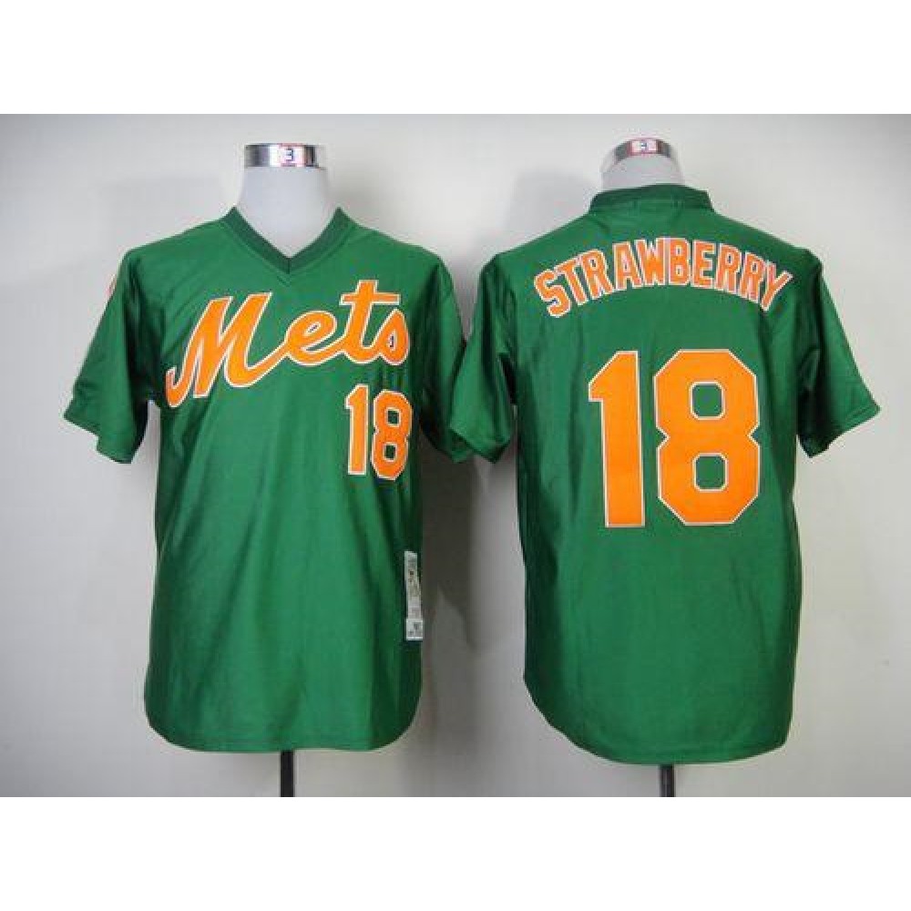 Mitchell and Ness 1985 Mets #18 Darryl Strawberry Green Throwback Stitched MLB Jersey
