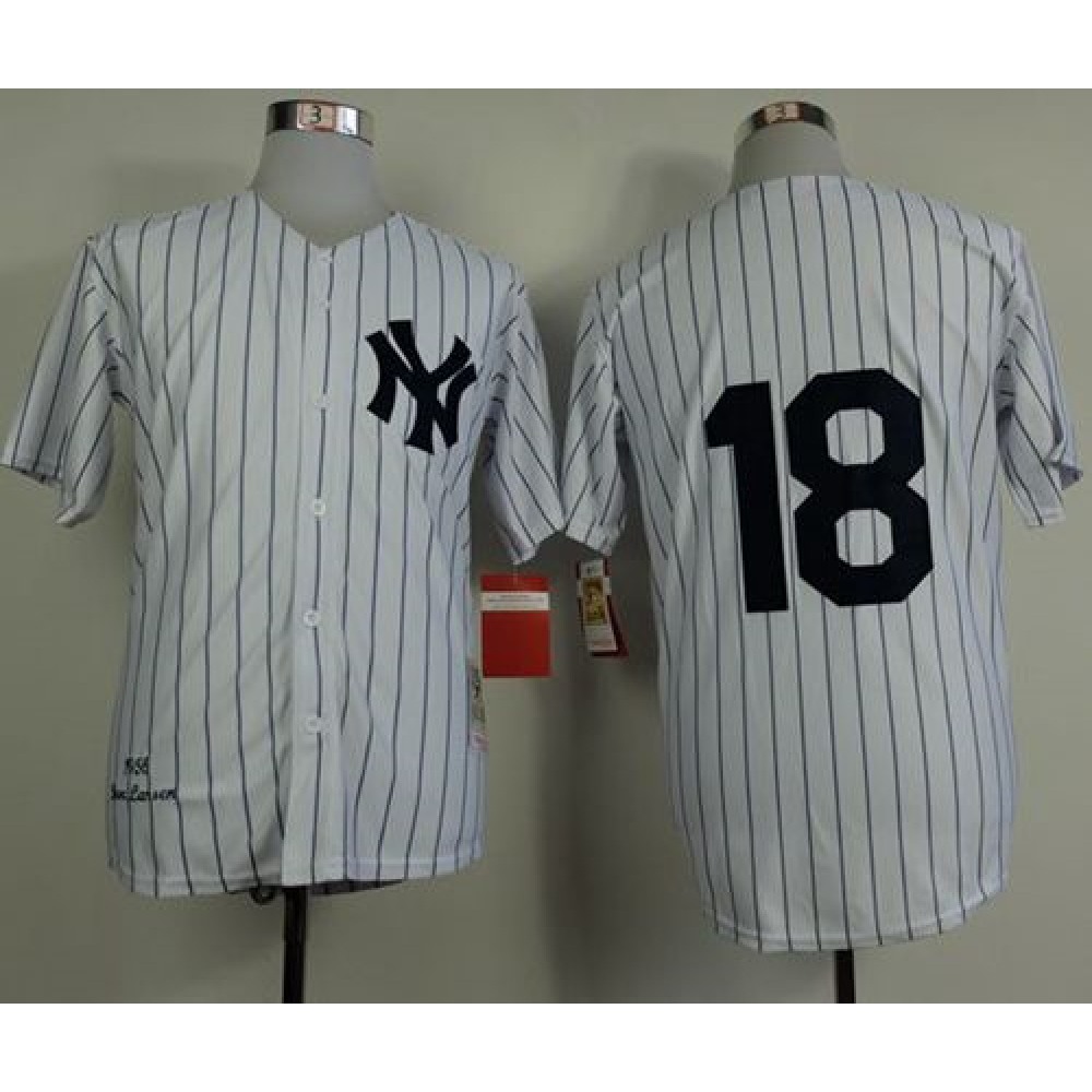 Mitchell and Ness 1956 Yankees #18 Don Larsen White Throwback Stitched MLB Jersey