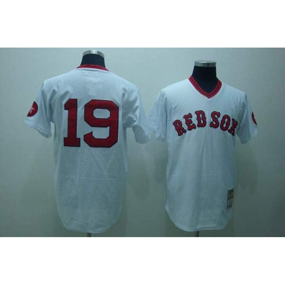 Mitchell and Ness Red Sox #19 Fred Lynn Stitched White Throwback MLB Jersey