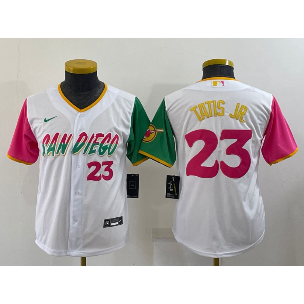 Youth San Diego Padres #23 Fernando Tatis Jr. 2022 White City Connect Stitched Baseball Jersey