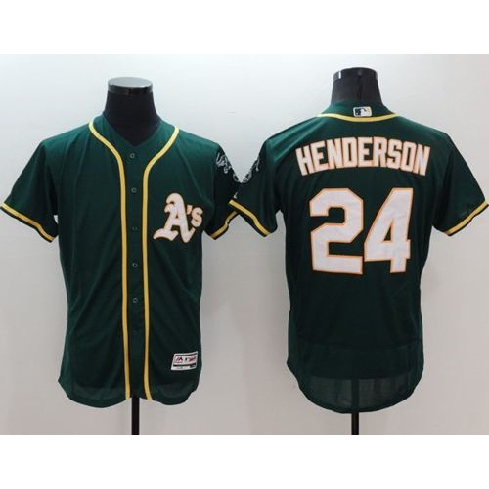 Athletics #24 Rickey Henderson Green Flexbase Authentic Collection Stitched MLB Jersey
