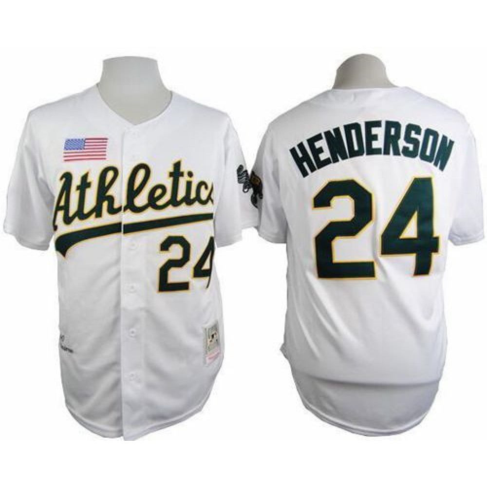 Men's Oakland Athletics #24 Rickey Henderson White Cool Base Stitched MLB Jersey