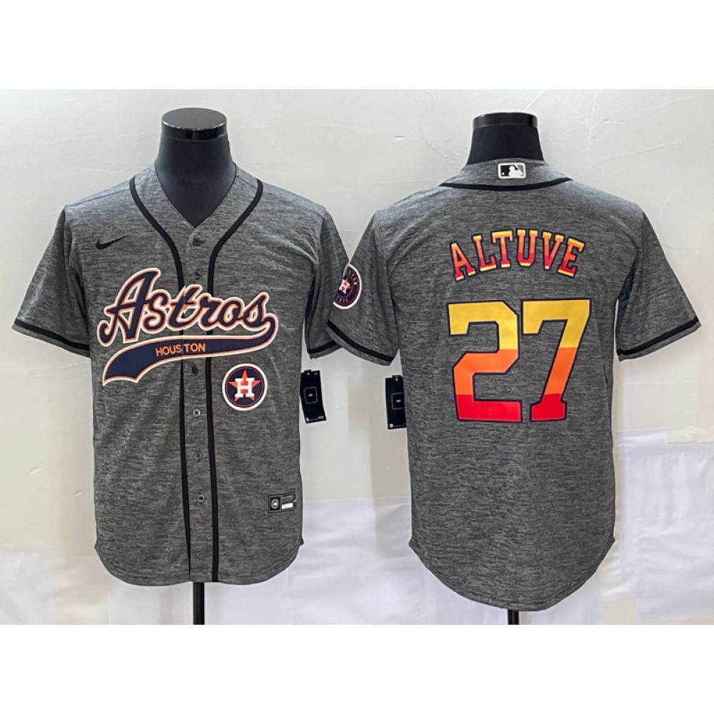 Men's Houston Astros #27 Jose Altuve Gray With Patch Cool Base Stitched Baseball Jersey
