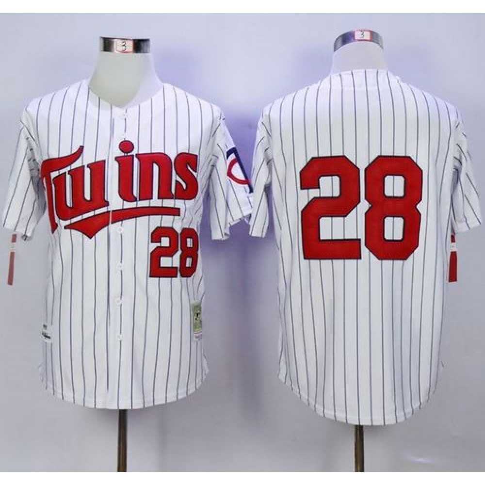 Mitchell And Ness Twins #28 Bert Blyleven White(Blue Strip) Throwback Stitched MLB Jersey