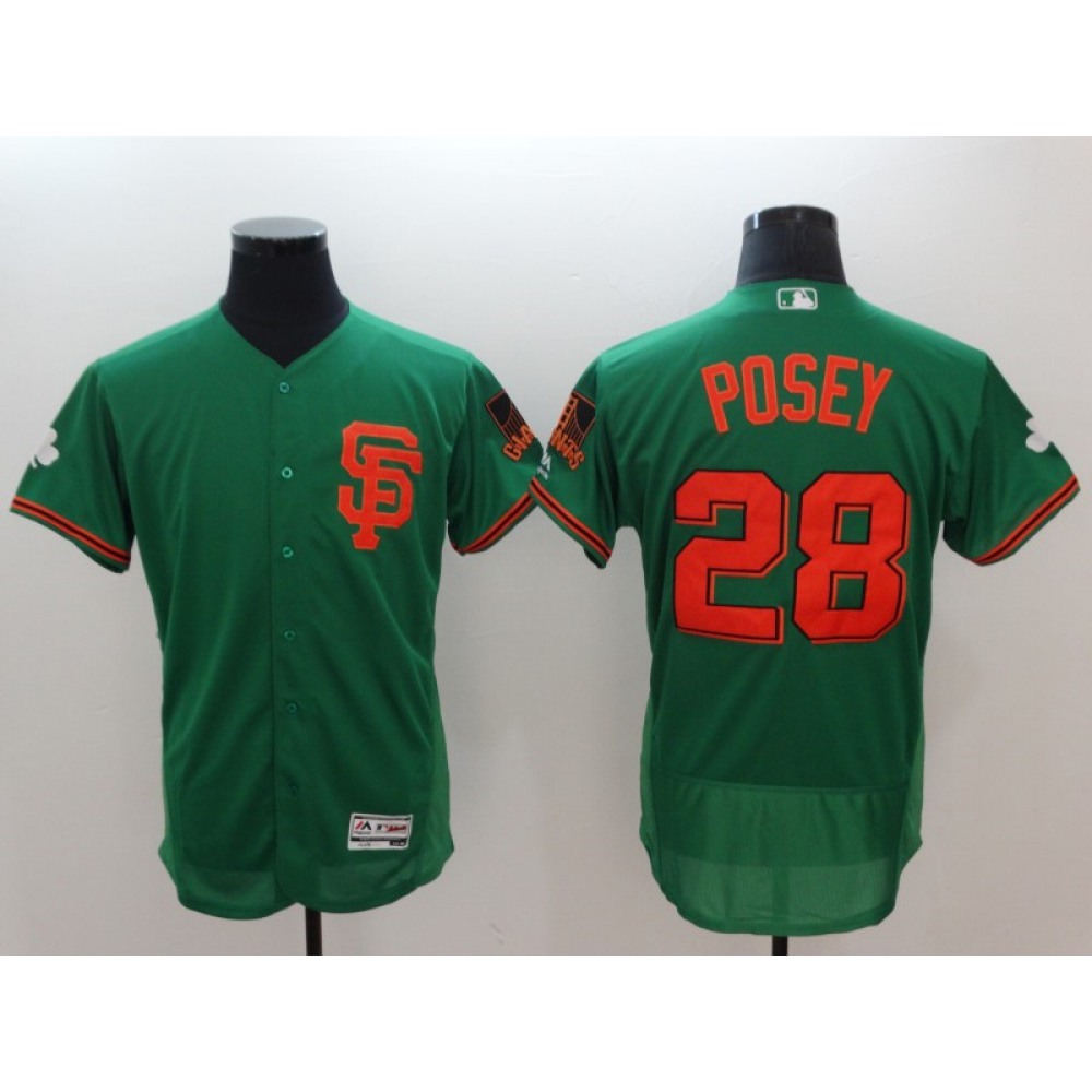 Men's San Francisco Giants #28 Buster Posey Green St Patrick's Day Flexbase Stitched MLB Jersey