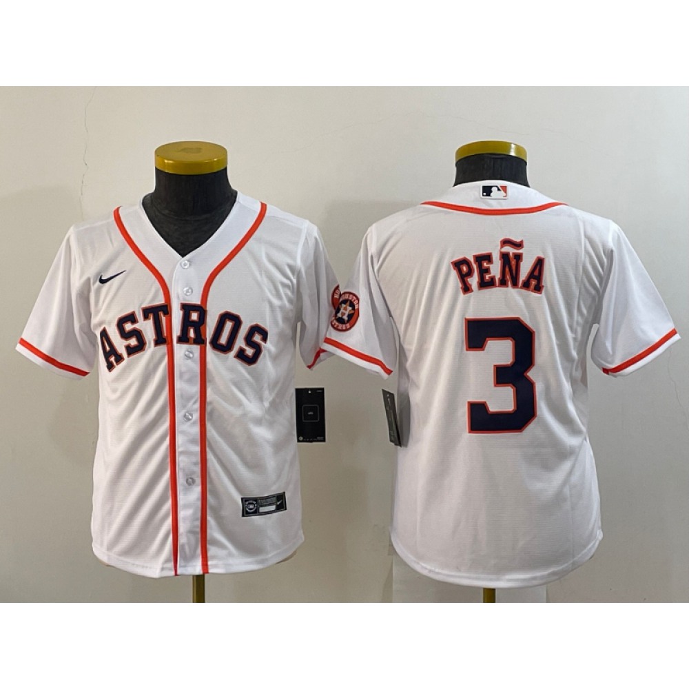 Youth Houston Astros #3 Jeremy Pena White With Patch Cool Base Stitched Jersey