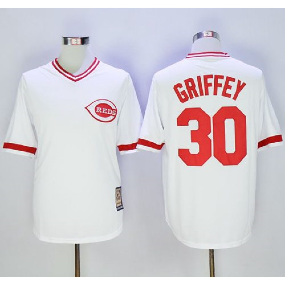 Mitchell And Ness Reds #30 Ken Griffey White Throwback Stitched MLB Jersey