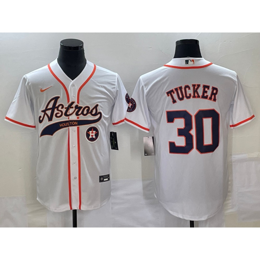 Men's Houston Astros #30 Kyle Tucker White With Patch Cool Base Stitched Baseball Jersey