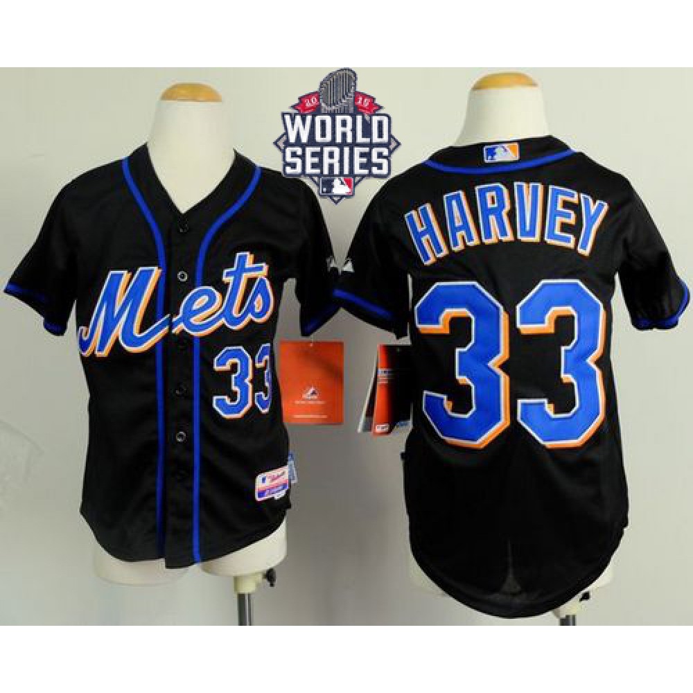 Mets #33 Matt Harvey Black Cool Base W/2015 World Series Patch Stitched Youth MLB Jersey