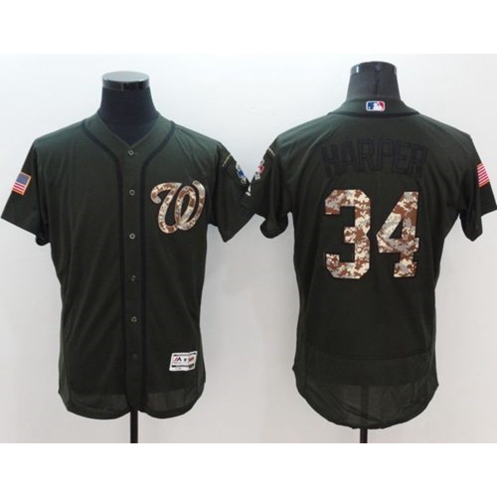 Nationals #34 Bryce Harper Green Flexbase Authentic Collection Salute to Service Stitched MLB Jersey