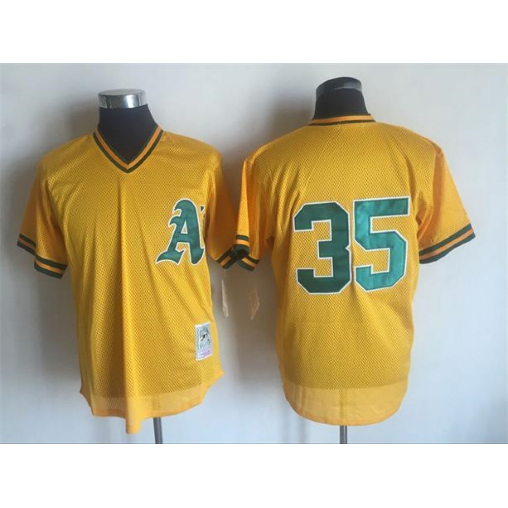 Men's Oakland Athletics #35 Rickey Henderson Mitchell And Ness Yellow 1984 Throwback Stitched MLB Jersey